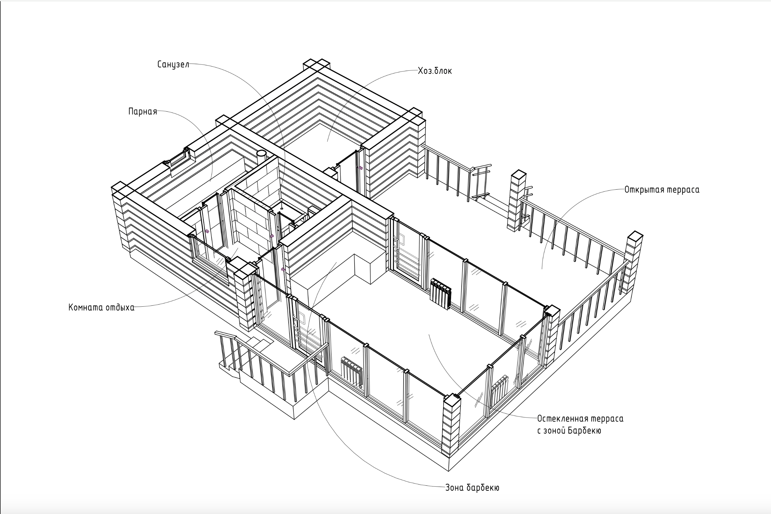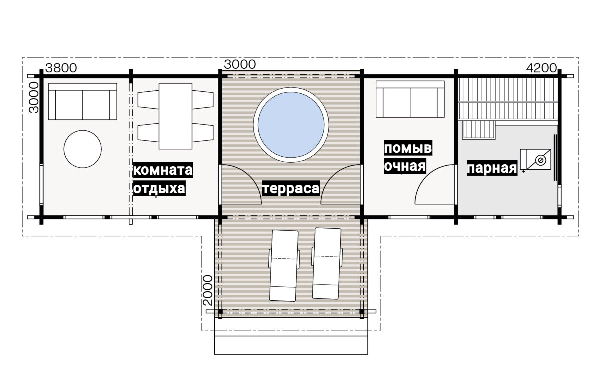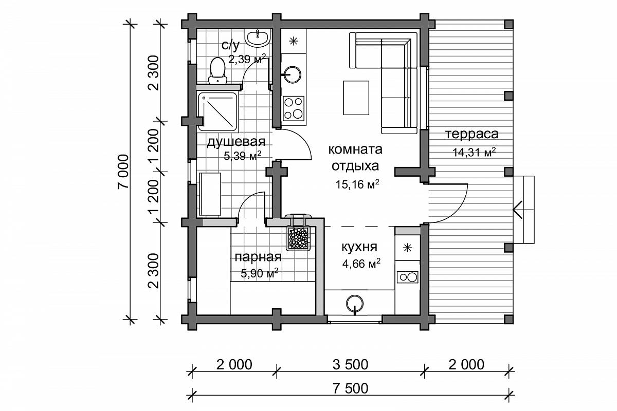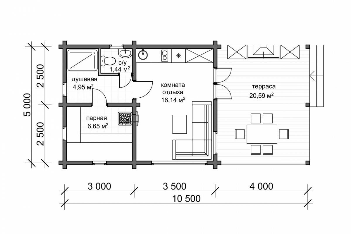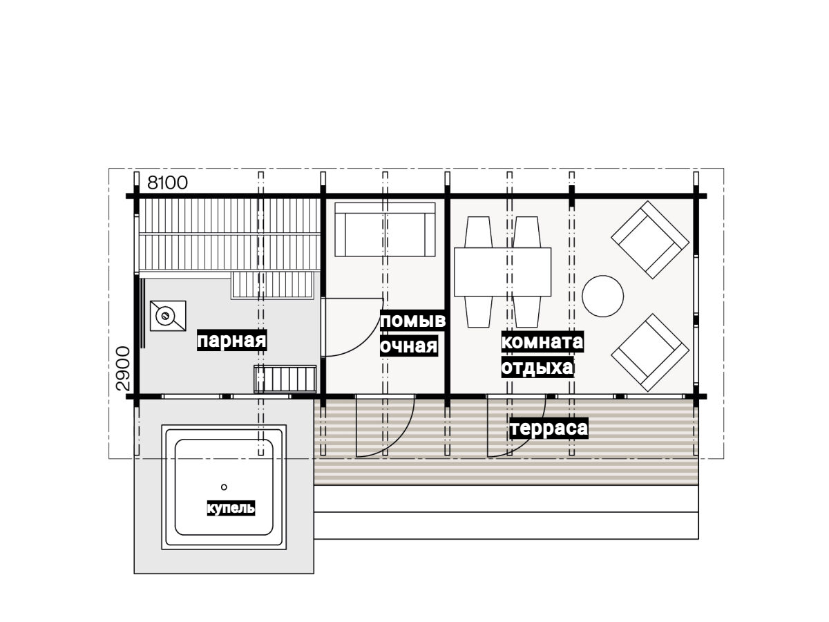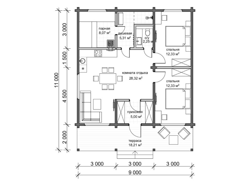 Выполнены из клееного бруса на выбор: 80/140/160/200 мм