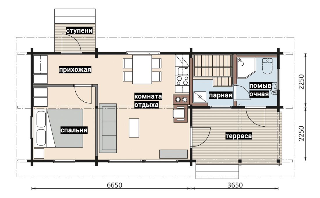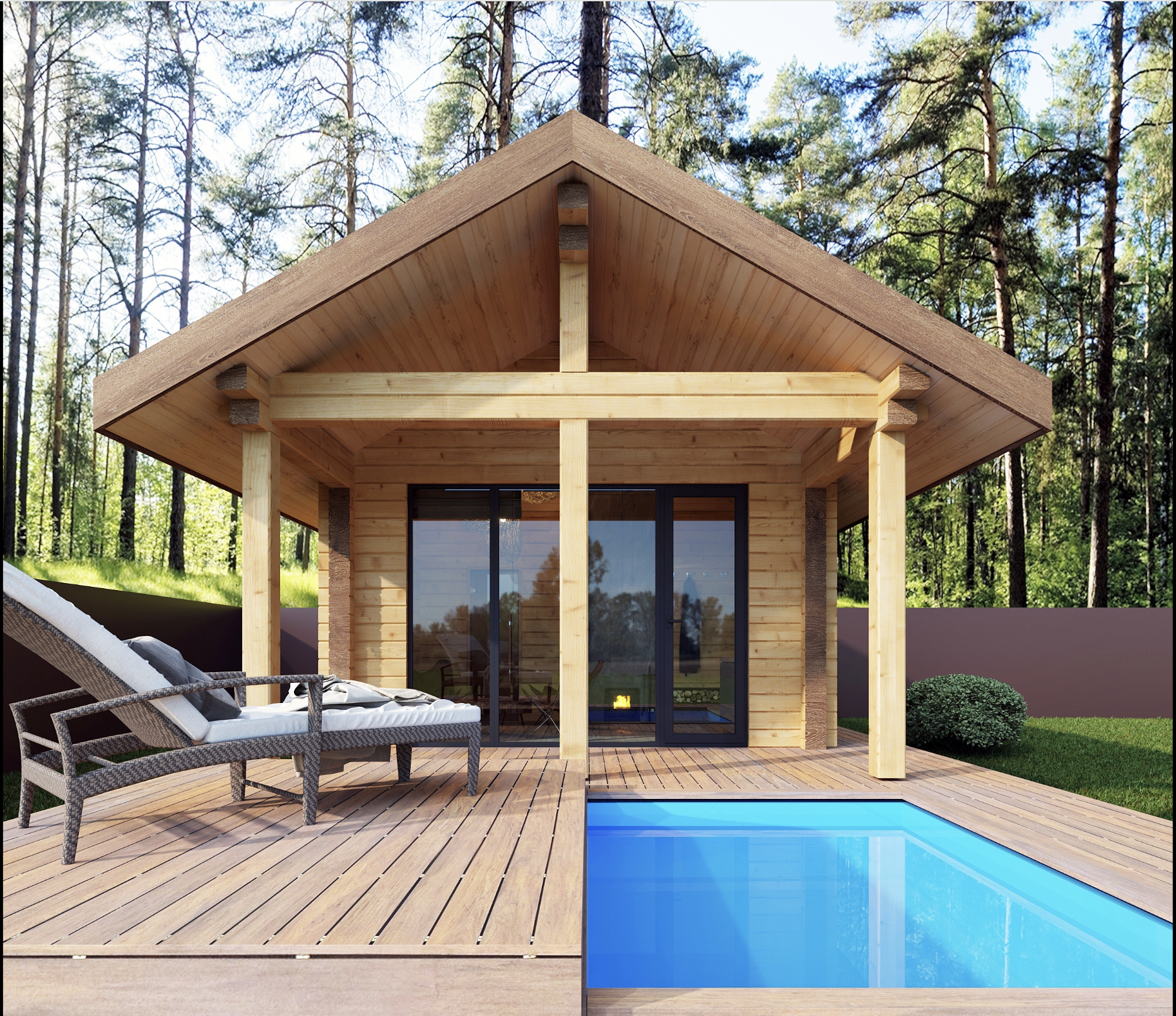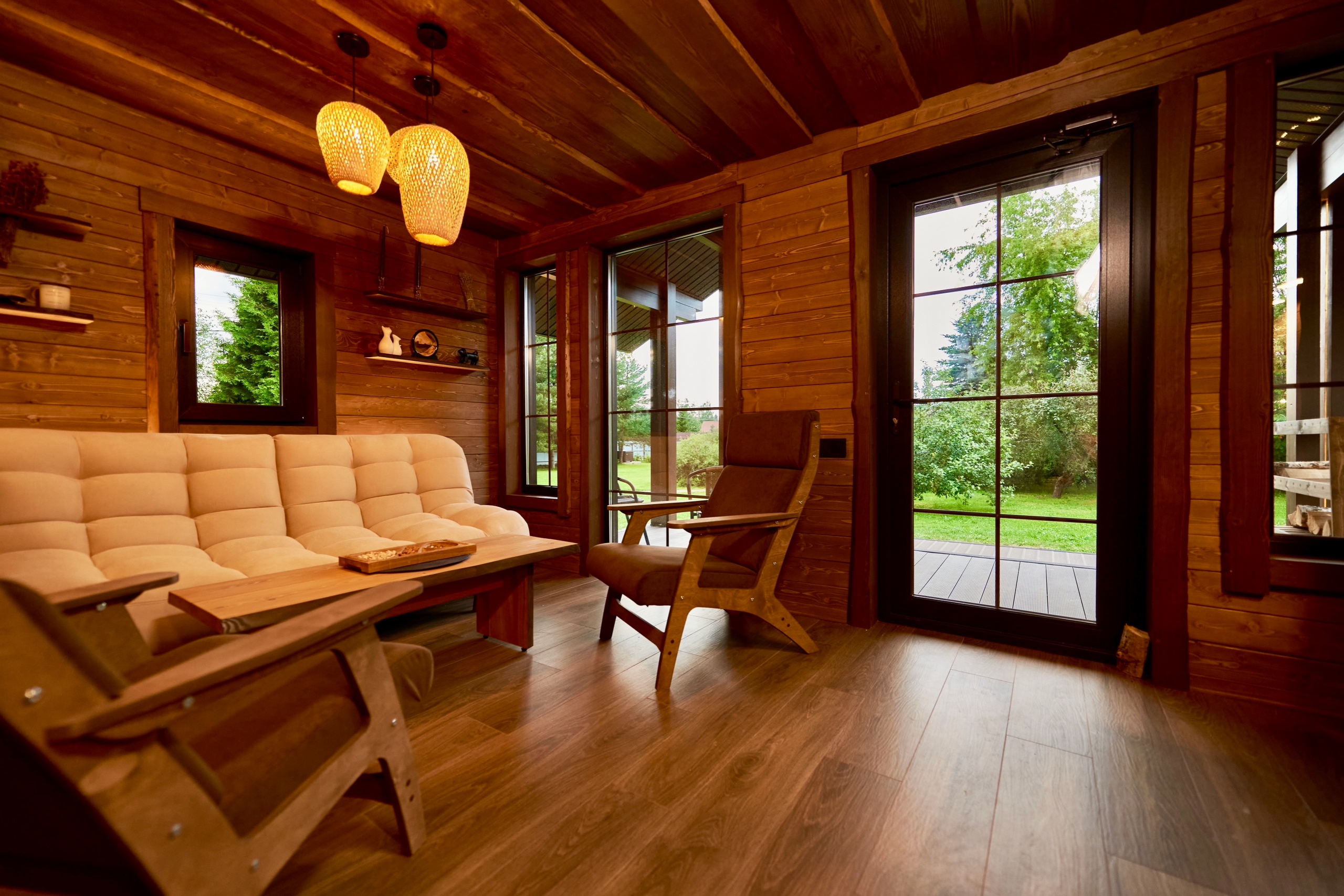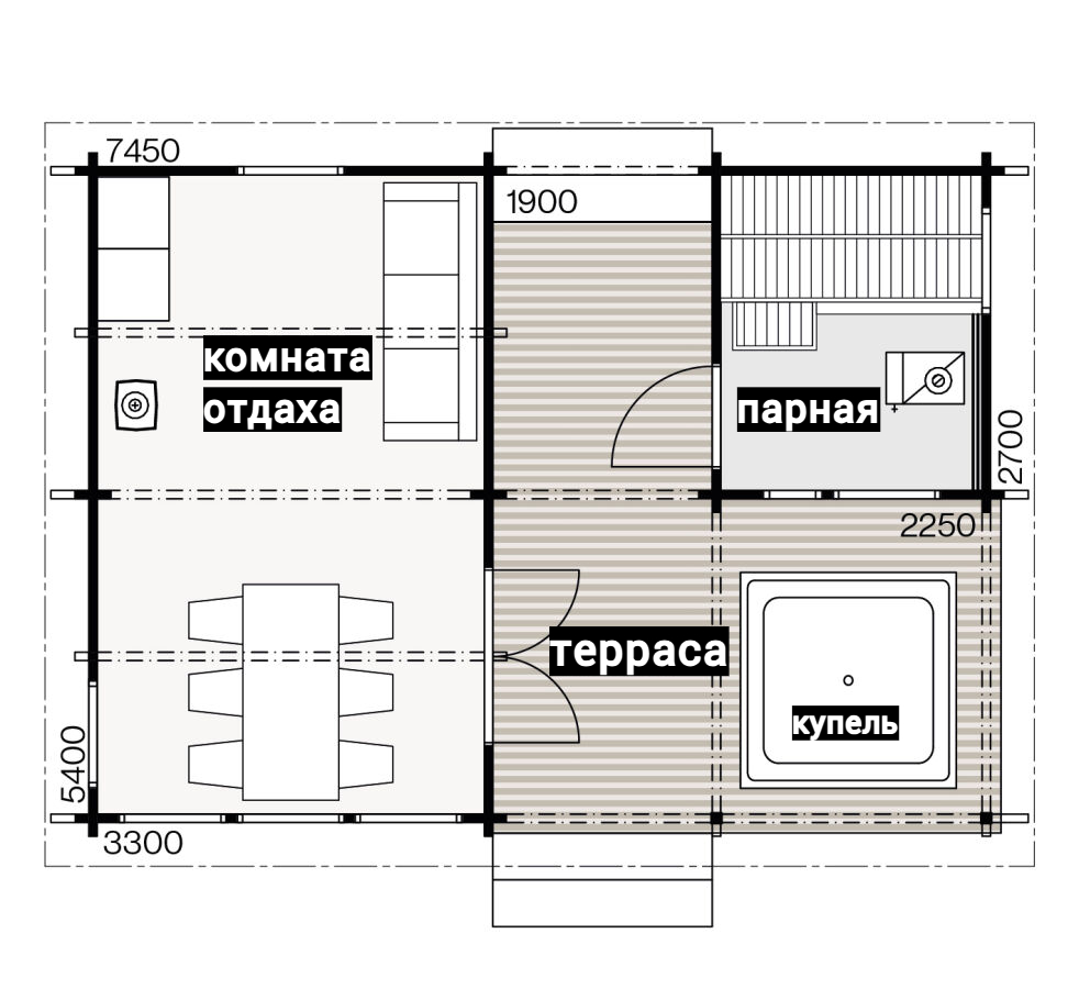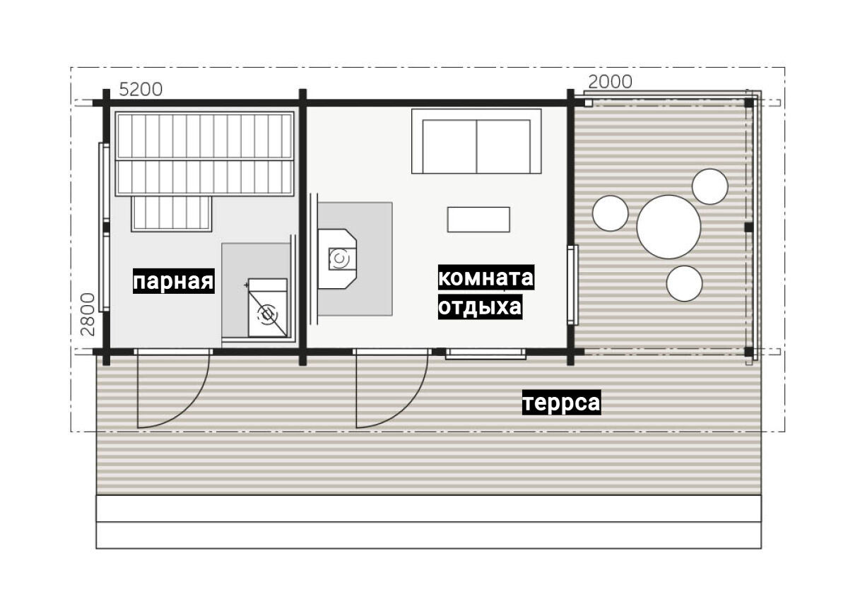 Выполнены из клееного бруса на выбор: 80/140/160/200 мм