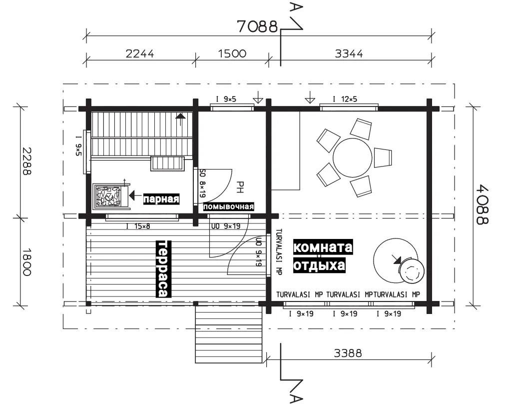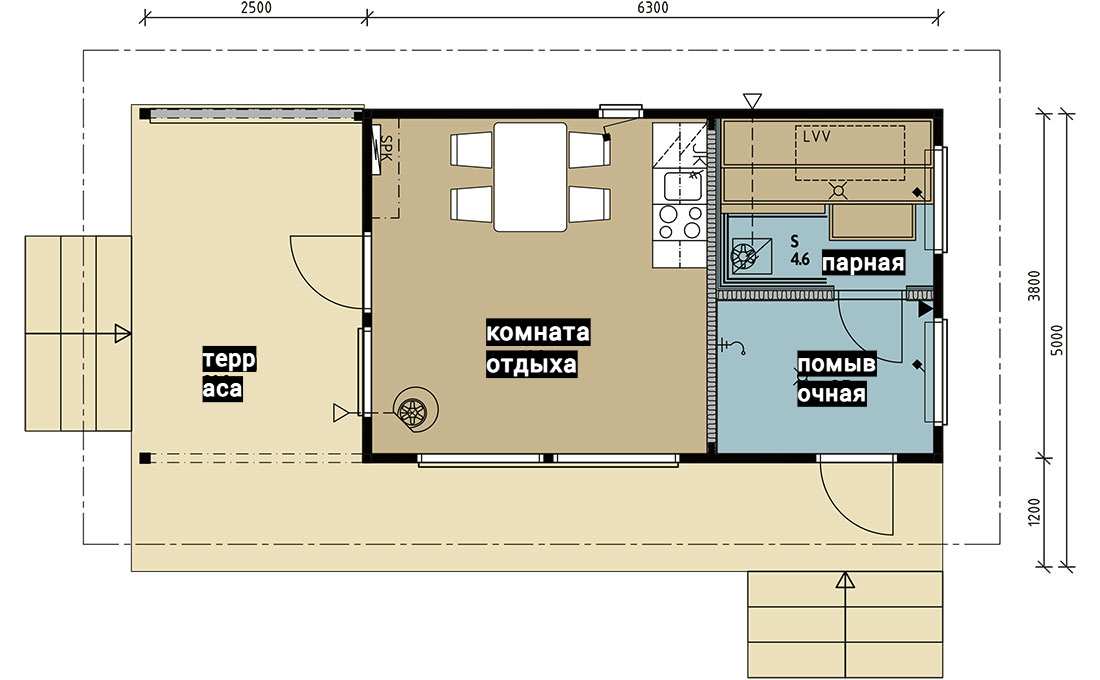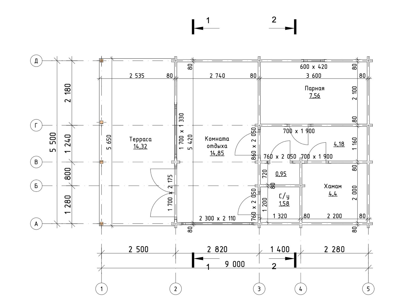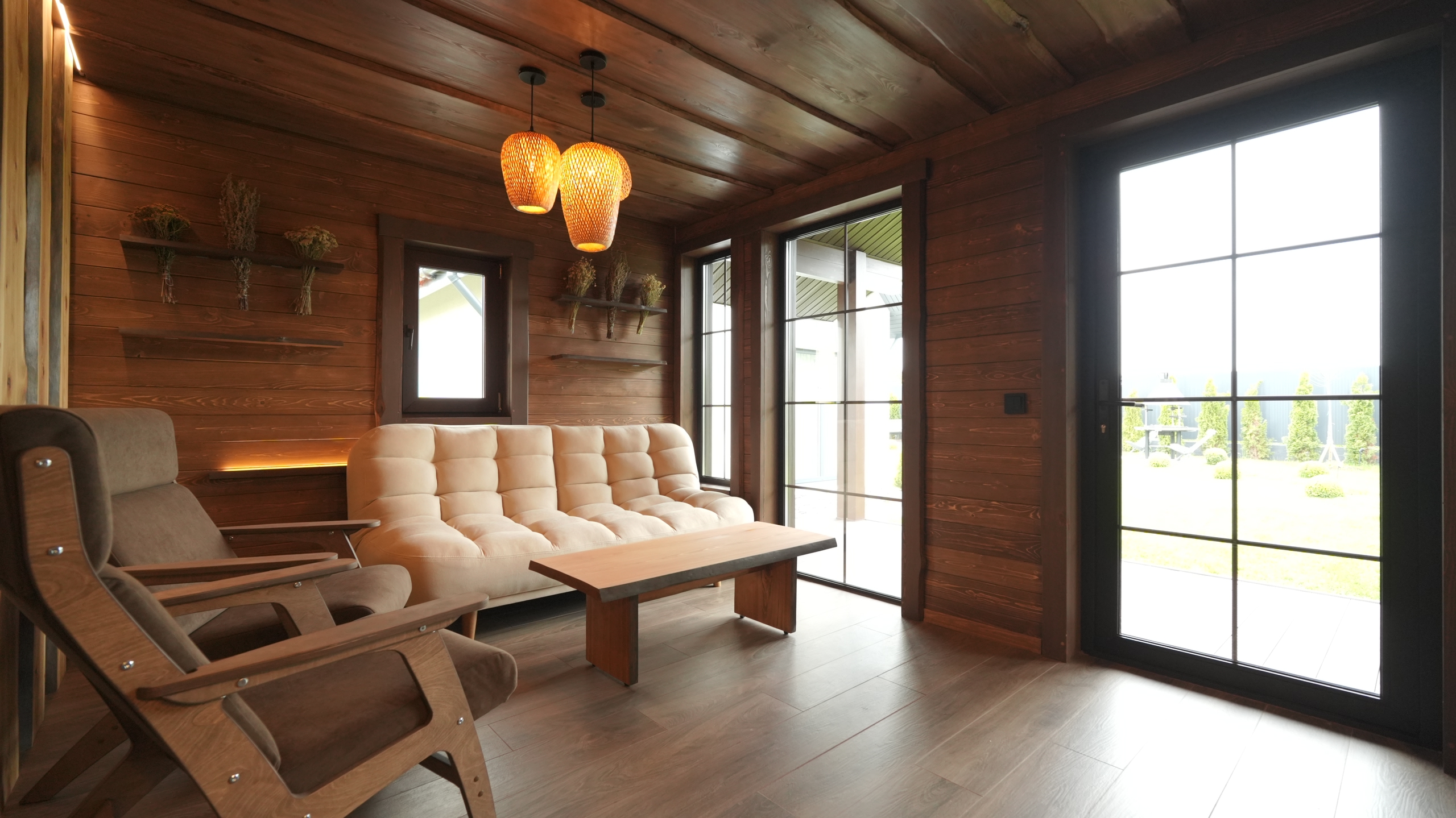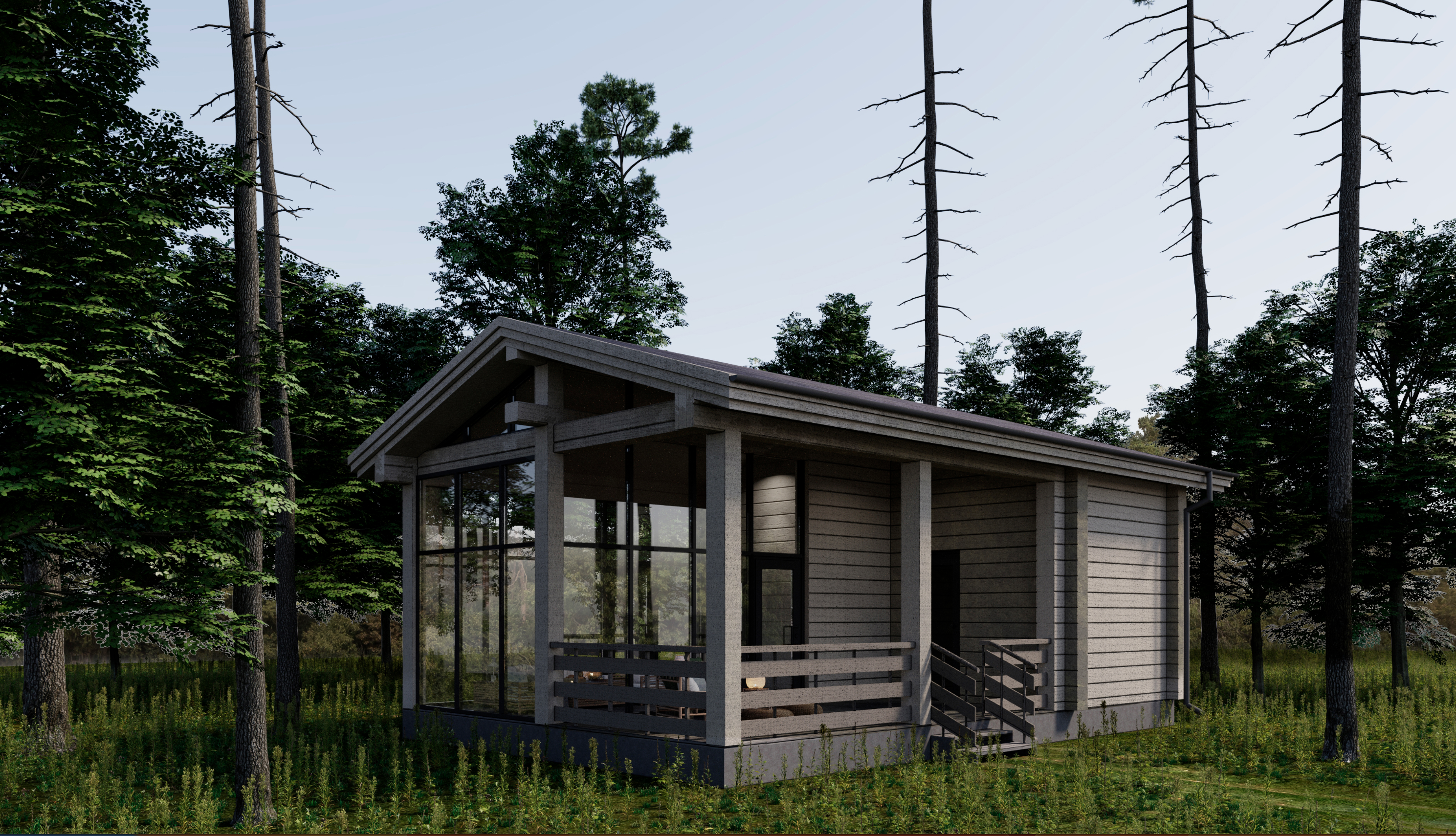 Выполнены из клееного бруса на выбор: 80/140/160/200 мм