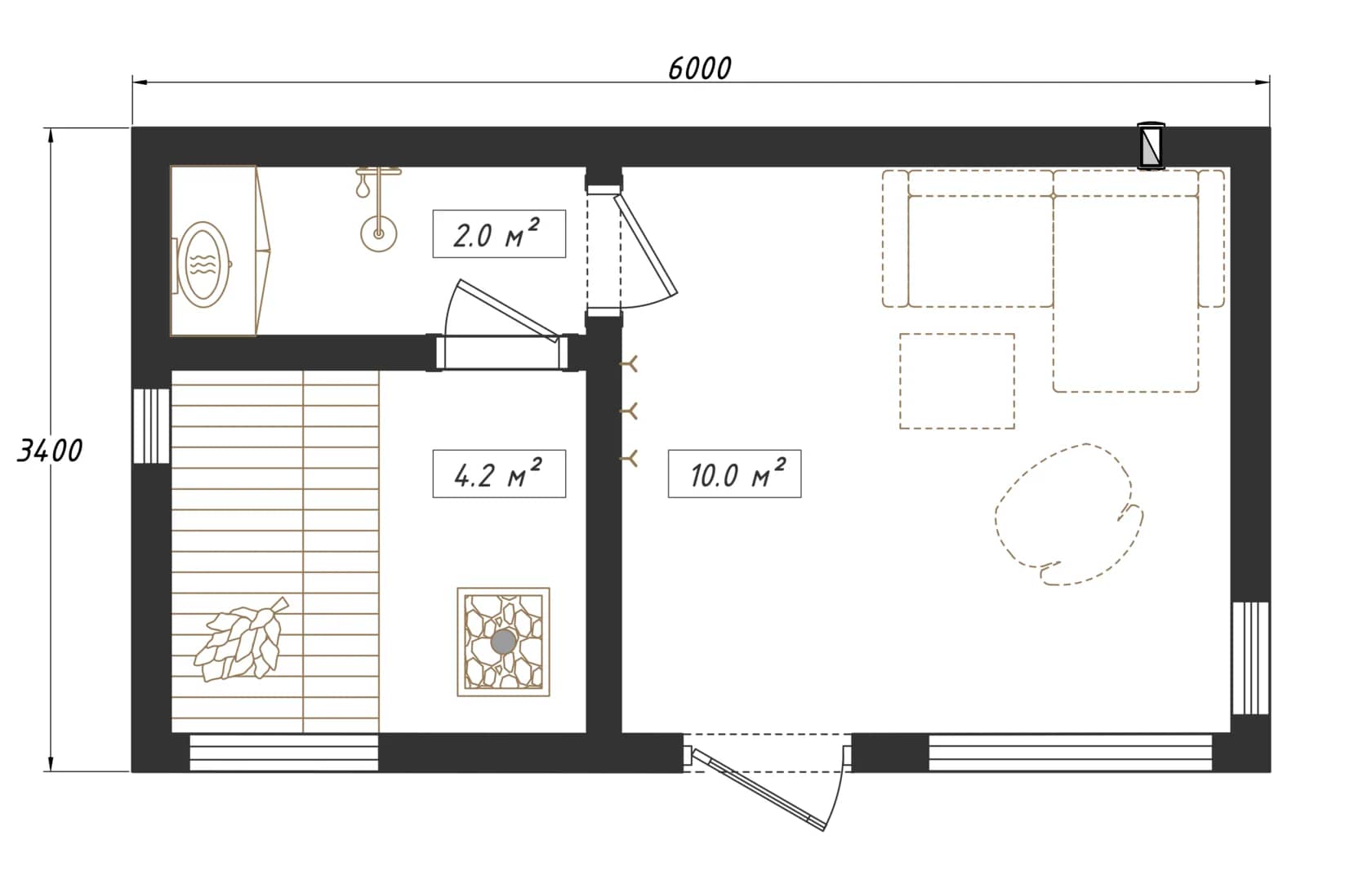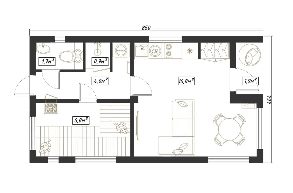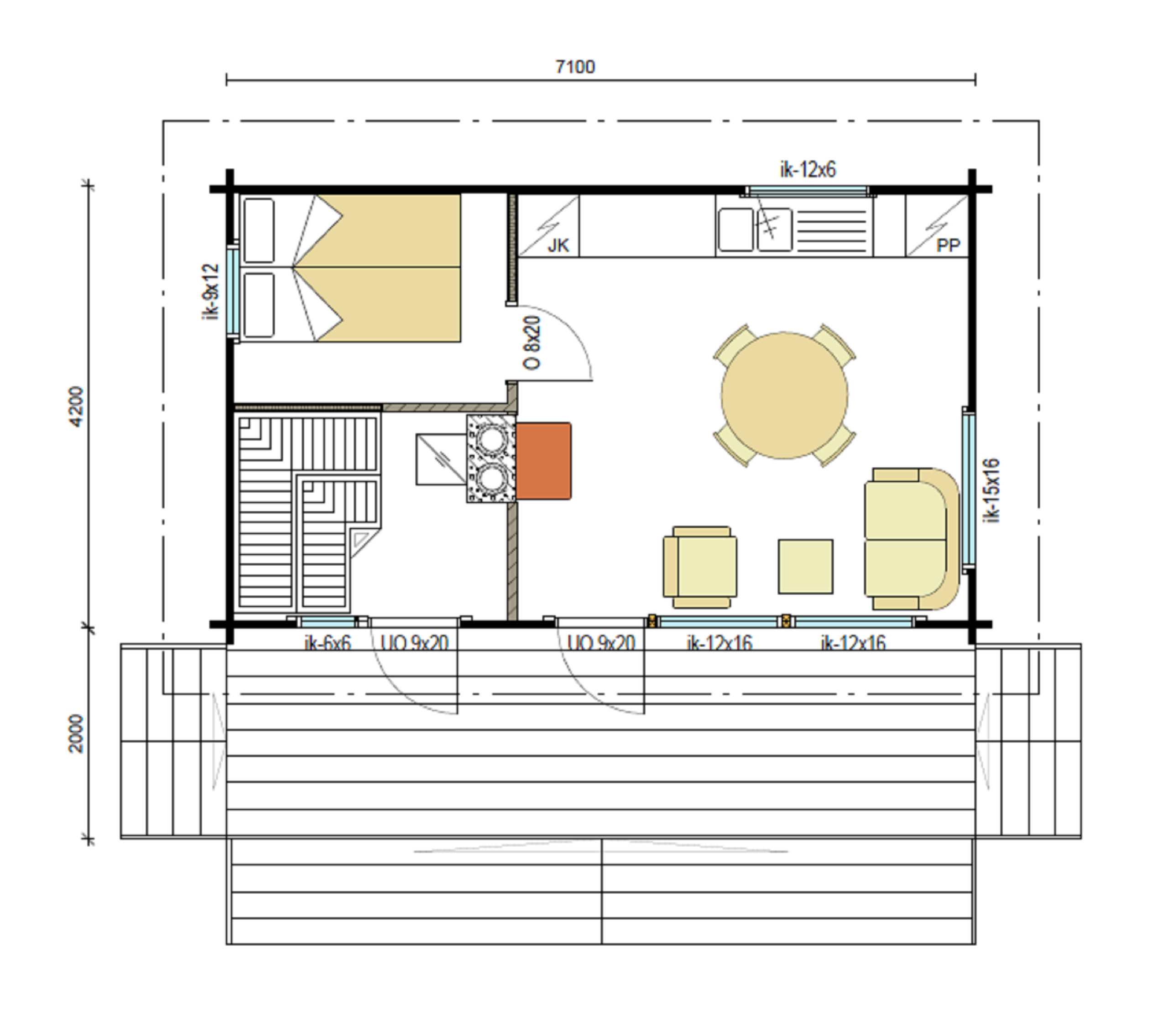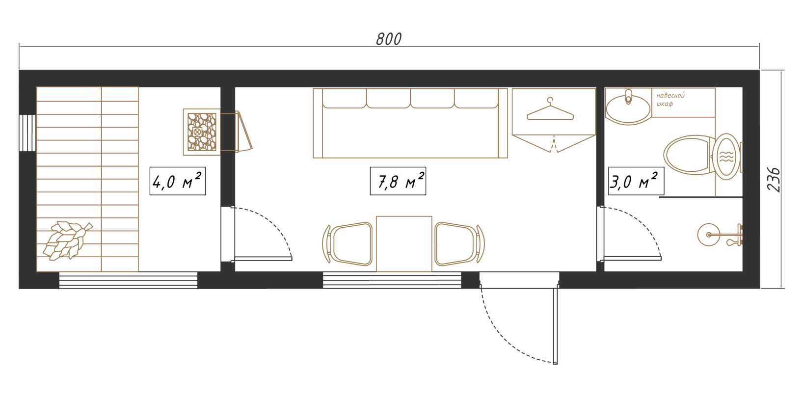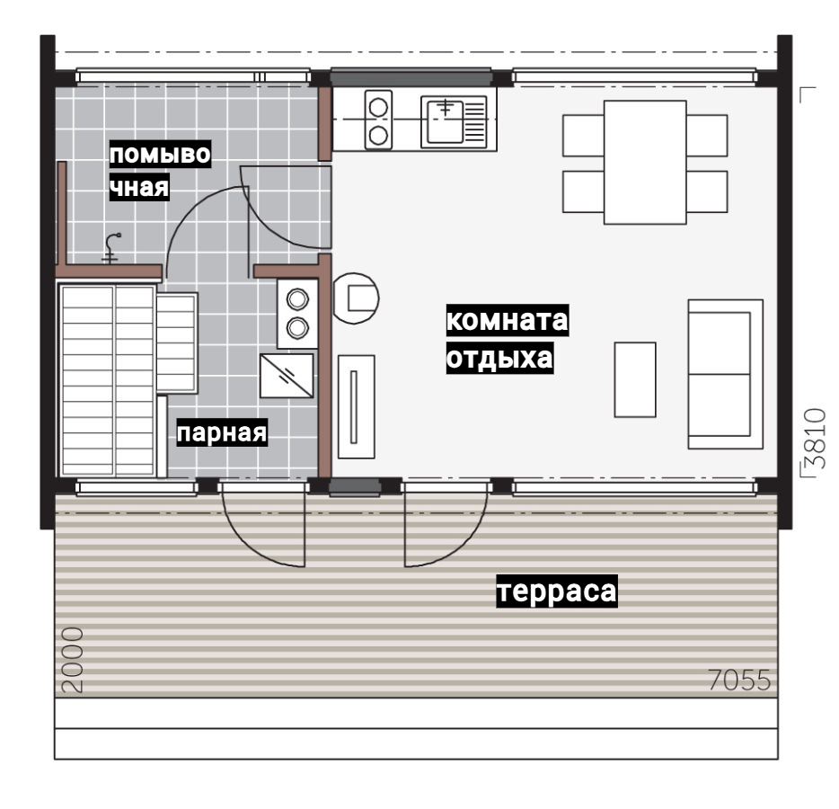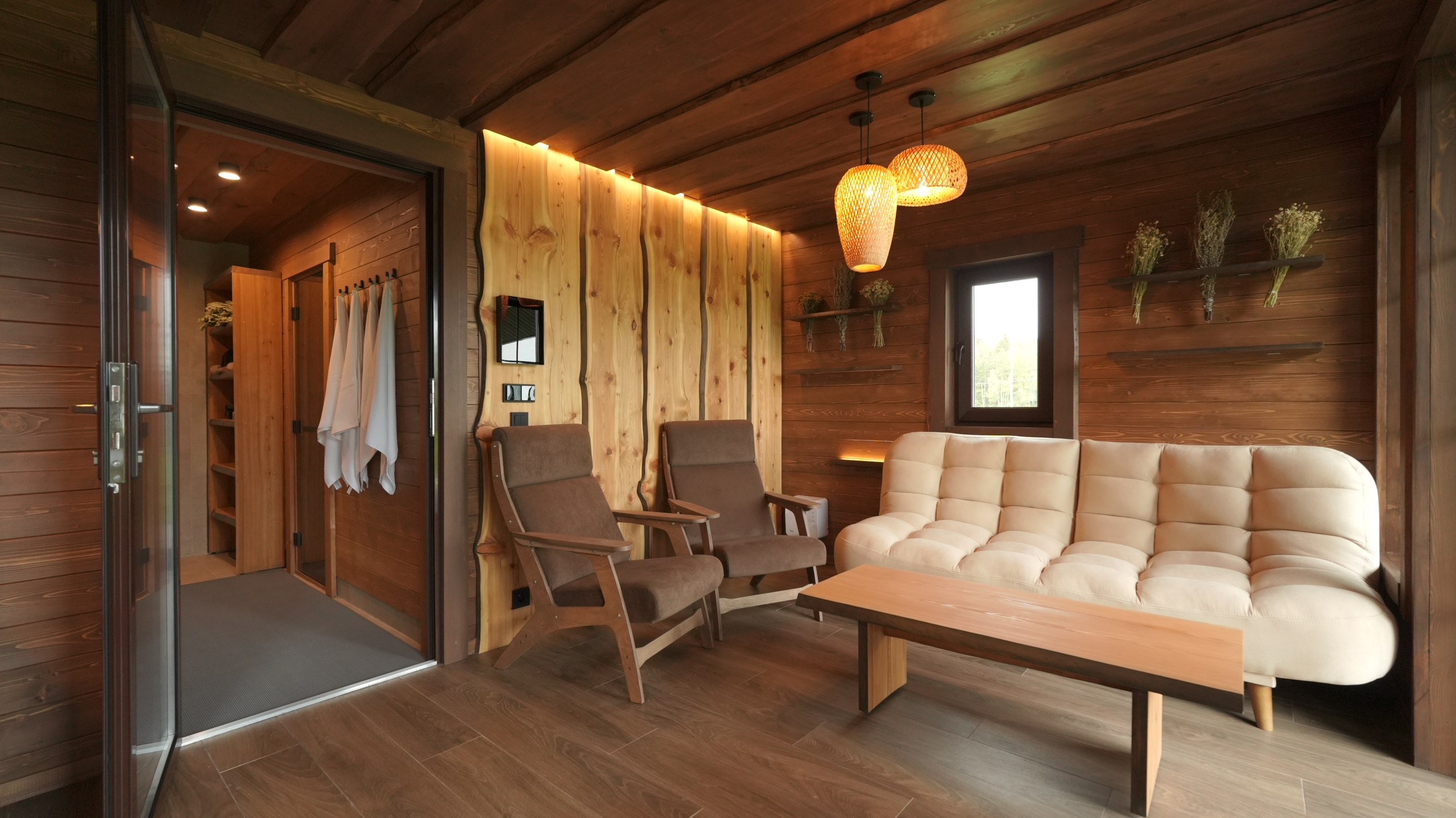 Выполнены из клееного бруса на выбор: 80/140/160/200 мм