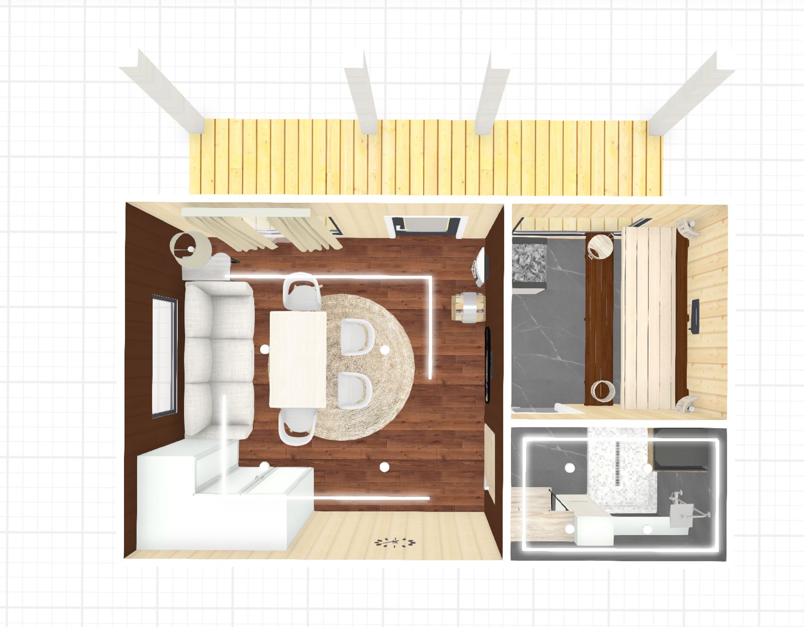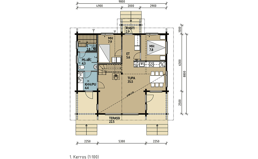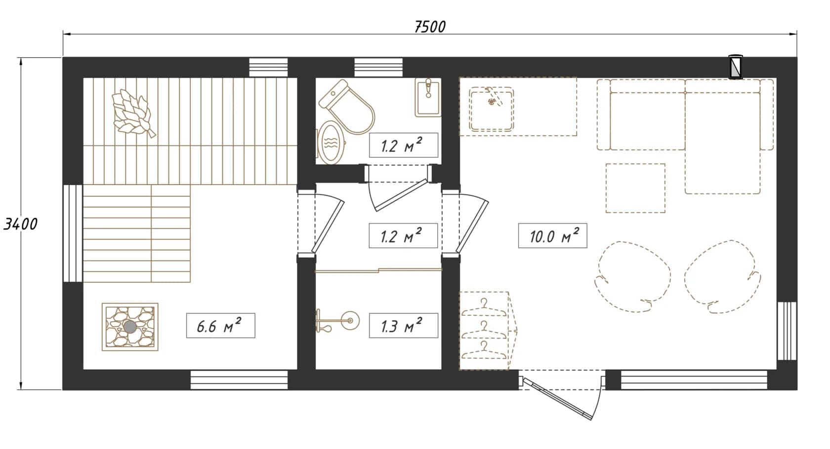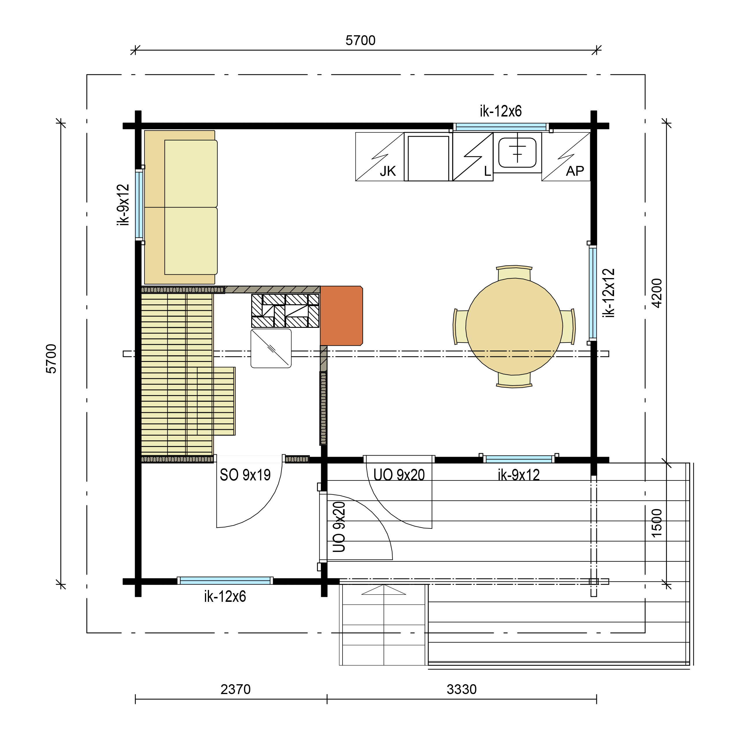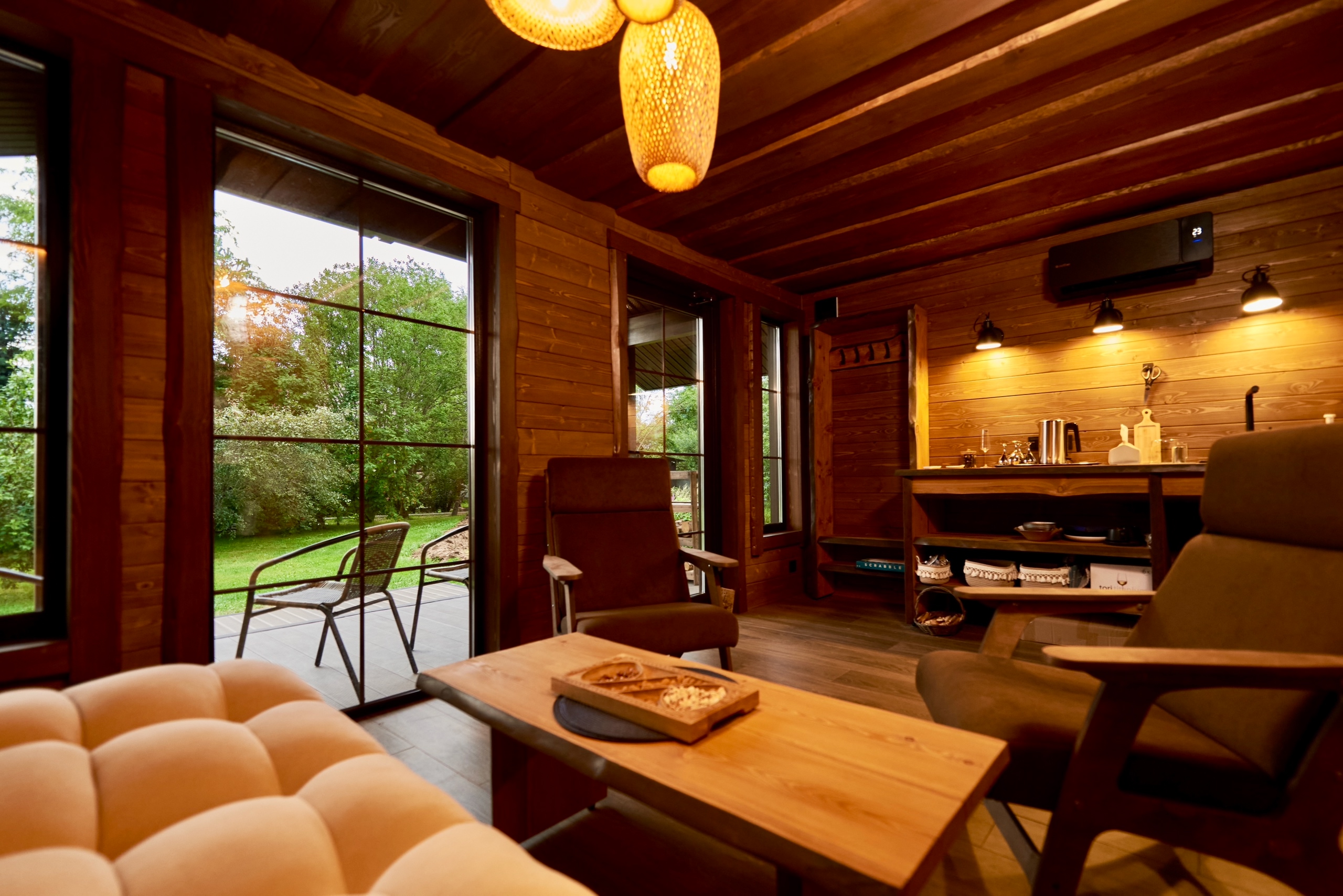 Выполнены из клееного бруса на выбор: 80/140/160/200 мм