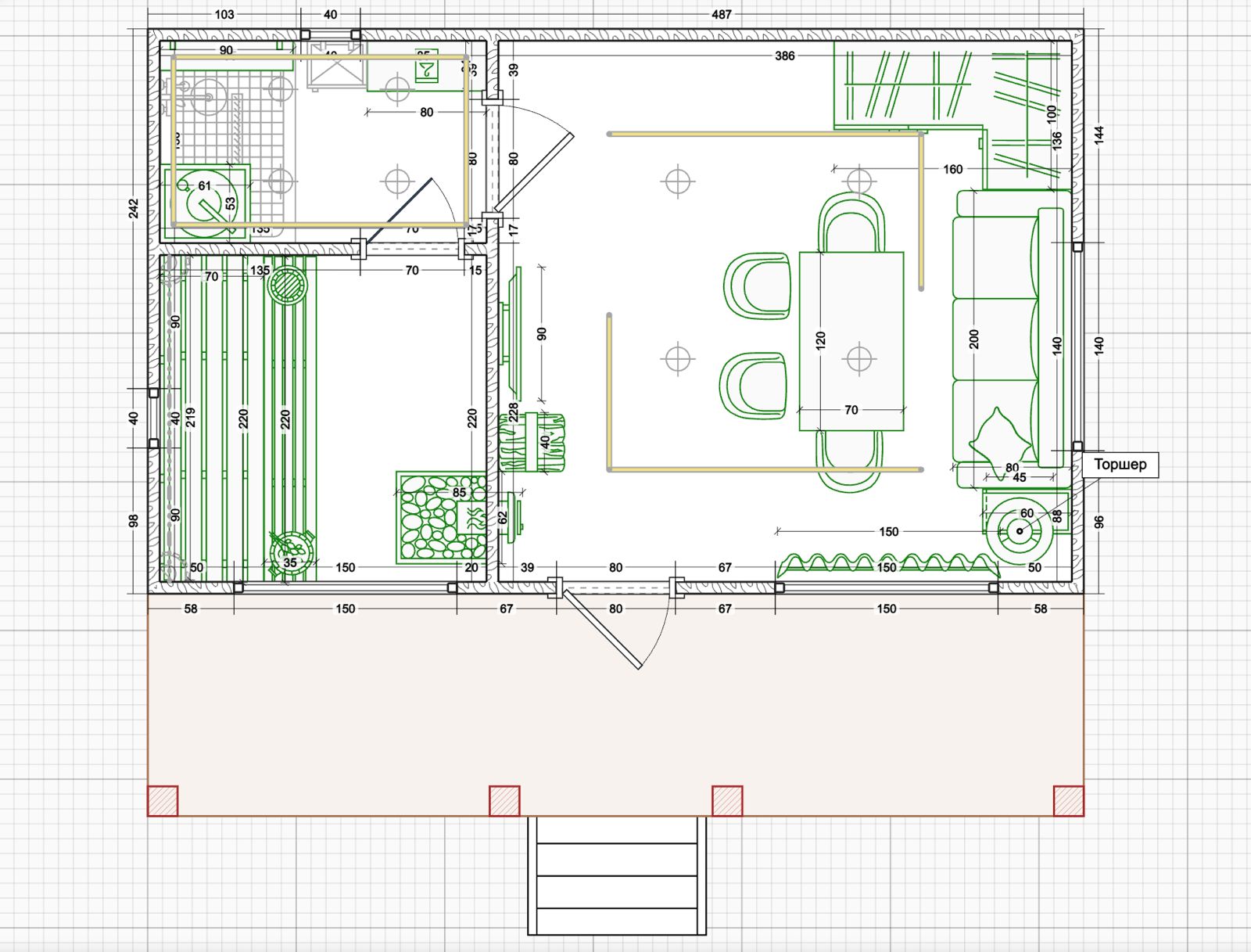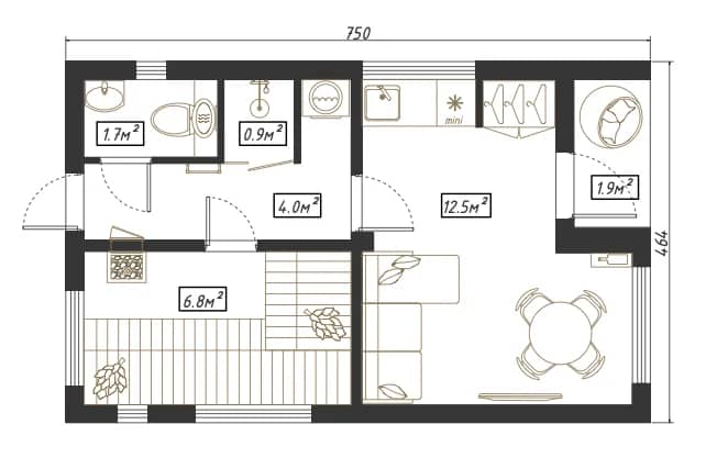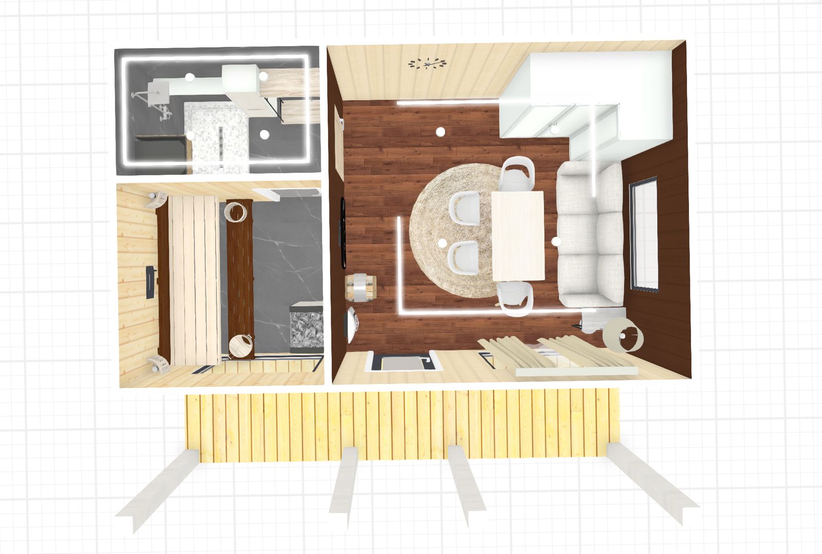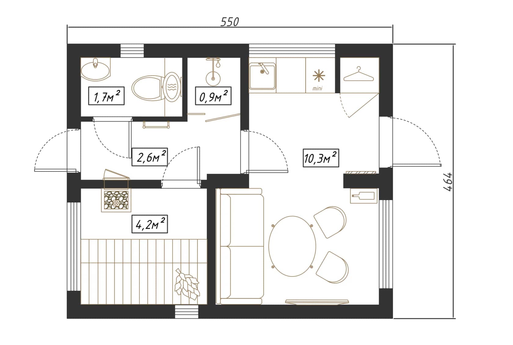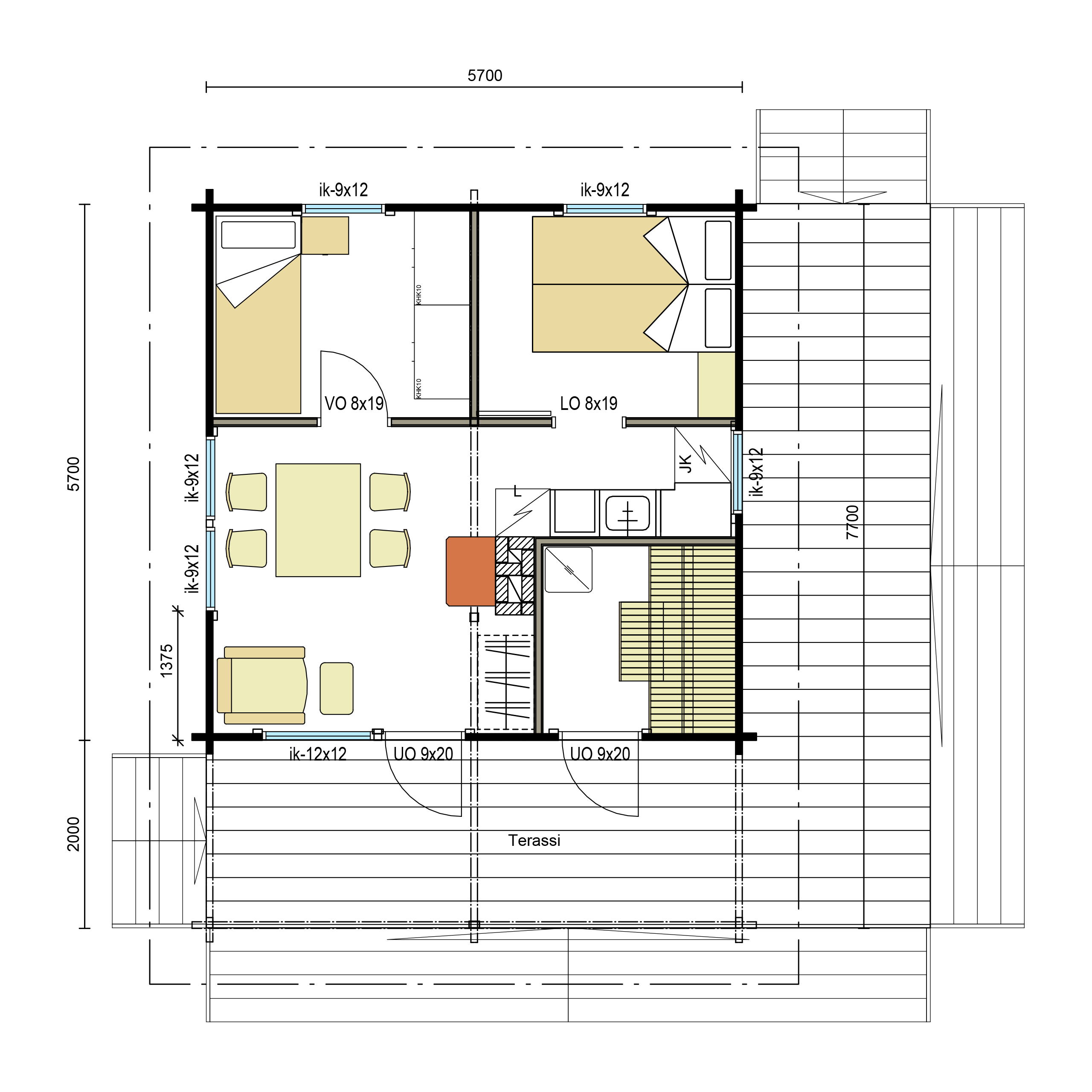Выполнены из клееного бруса на выбор: 80/140/160/200 мм