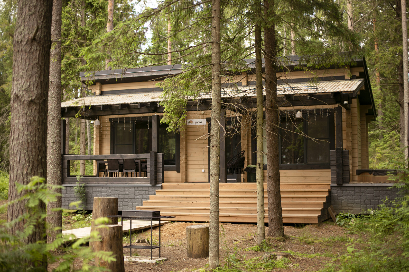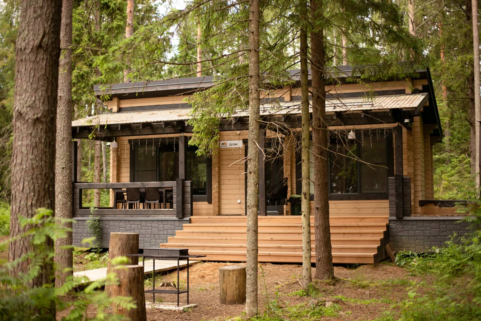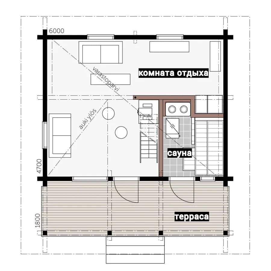 Внешние размеры: 55 м² (жилая — 35 м², веранда — 20 м²)